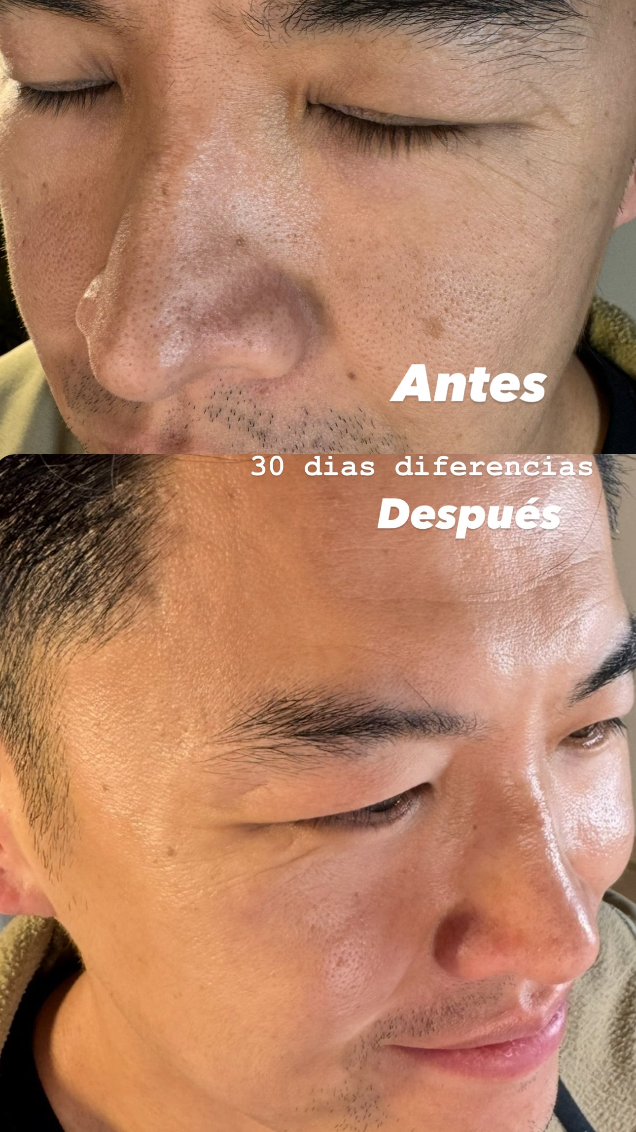 Entiendo que en redes puede parecer que es indispensable hacer 10 pasos en tu rutina de skincare coreano , cada vez, pero creeme es má importantes tratar tus necesidades, de forma especifica , simple y constante. Así mi esposo obtuvo este resultado en 30 Dias con tan solo 1 paso!